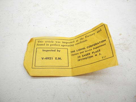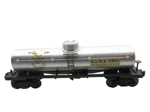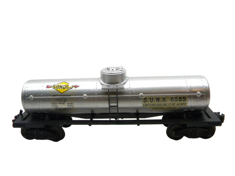 Lionel 6555 Sunoco One Dome Tank Car  1949-1950  Metal Tank With Die-cast Frame   Slight Decal Loss    Has Original Inspection Slip    Like New in Original Box